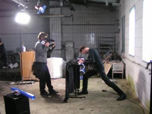 dann einige kranke Sachen, wo wir selbst als Schauspieler mitwirken. Zusätzlich gibt's noch eine Hauptfigur, ein kleines Kind und einen alten Mann, die im Video vorkommen. Der Schauspieler war wirklich klasse. Er spielt in diversen kleineren Theaterstücken in Wien und hier merkt man schon ganz deutlich, was einen Profi von einem Laiendarsteller unterscheidet. Der alte Mann wird vom Opa von Christoph gespielt. Das Kind ist mein Cousin Manuel. In diesen Parts der Handlung konnten wir alle so richtig schön aus uns herausgehen und es hat echt Spass gemacht.