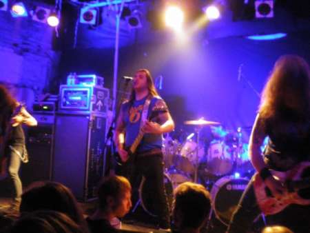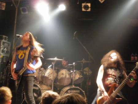 Um kurz vor neun ruft der Sänger von Warbringer in den Innenhof/Biergarten, dass die Leute doch gefälligst ihren Arsch in den Saal schwingen sollen, gleich geht’s los. Und wie Warbringer loslegen. Die Jungs aus Kalifornien legen ohne Intro oder Kompromisse direkt los und lassen die ersten Matten kreisen. Ab dem dritten Song fangen die ersten zögerlichen Mosh-Pits an und zum Ende des Sets ist der vordere Teil der Halle fest in der Hand von ebendiesem. Warbringer sind technisch versiert und live eine Wucht, doch irgendetwas fehlt. Die Songs sind zwar eingängig, aber auch genauso schnell wieder vergessen und verschwimmen in der Erinnerung zu einem Einheitsbrei. Warbringer fehlt (noch) der nötige Groove, die Songs sind aggressiv, haben Power, sind technisch genial, aber mehr leider nicht. Doch die Zuckerfabrik verlangt nach mehr, zu lange hat man in Rostock gewartet, und Wabringer spielen zum Schluss eine ziemlich gute Coverversion von dem Motorhead Klassiker "(We Are) The Roadcrew" das mich dann auch versöhnlich stimmt. Ich hoffe sie steigern sich mit ihren nächsten Alben, das Potential haben sie.